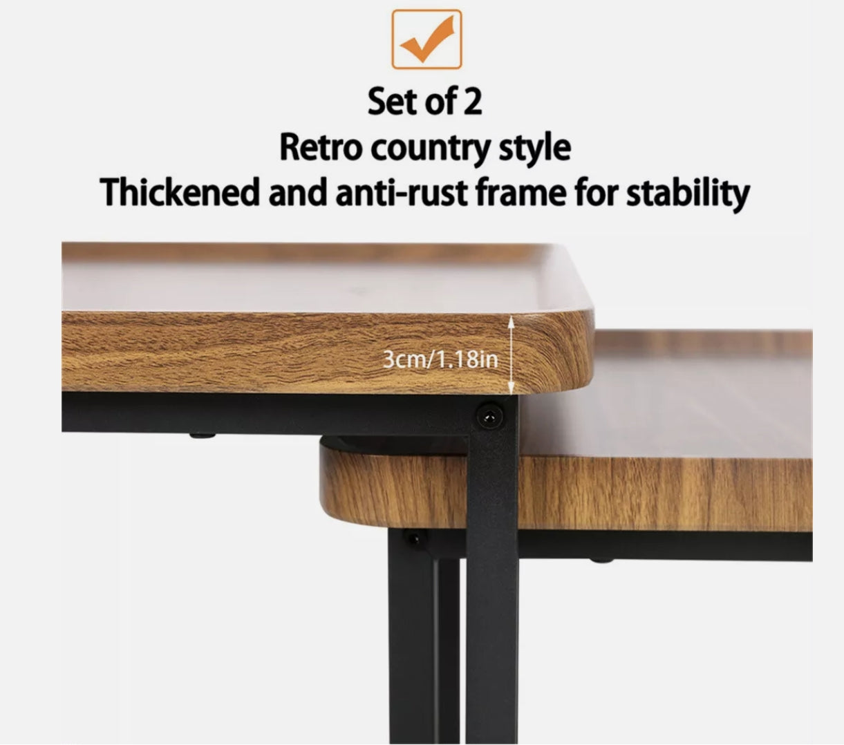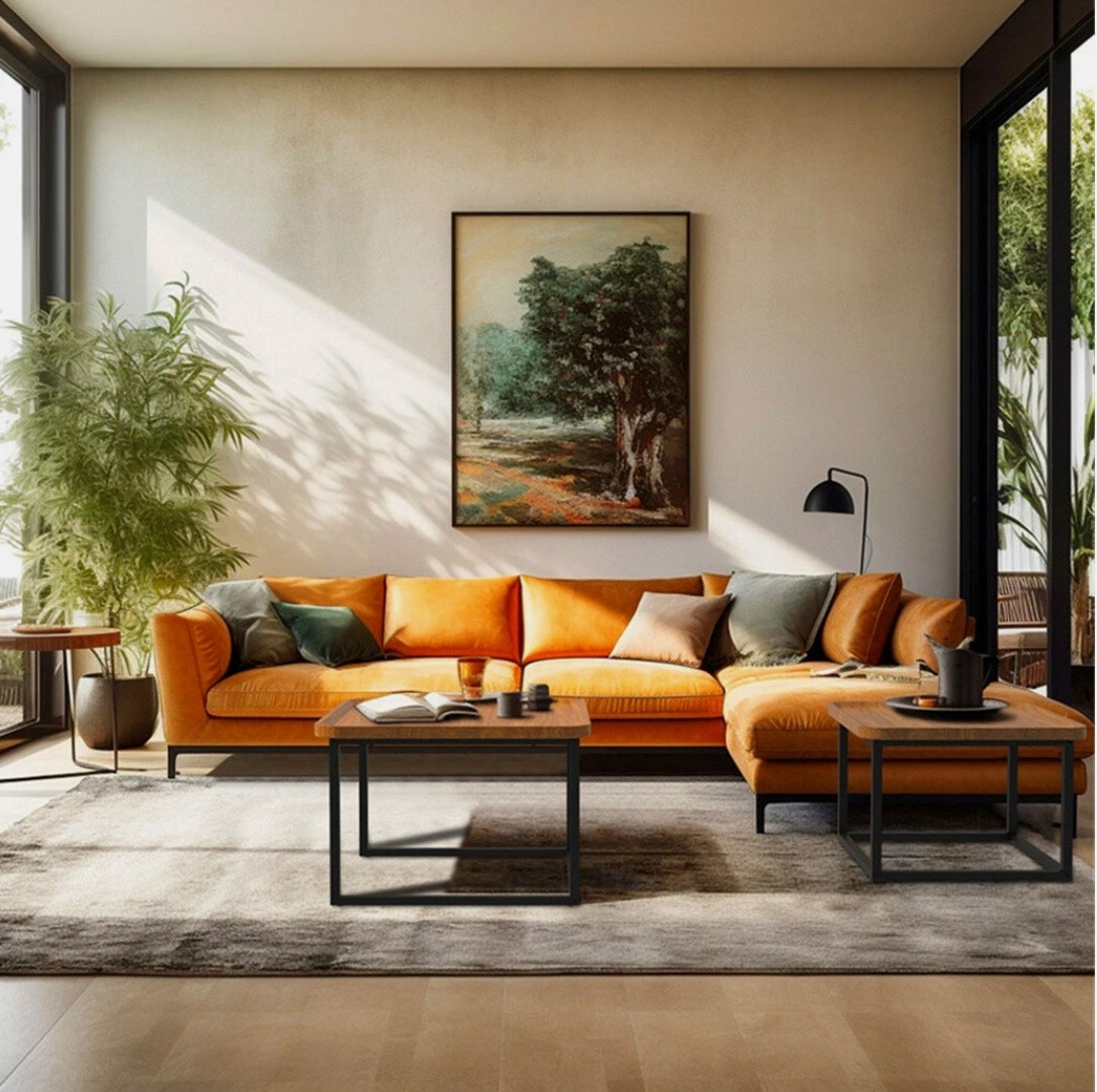 CARRÉE Nesting Coffee Table Set – Warm Timber & Black Steel Frame (Modern + Cozy Style)