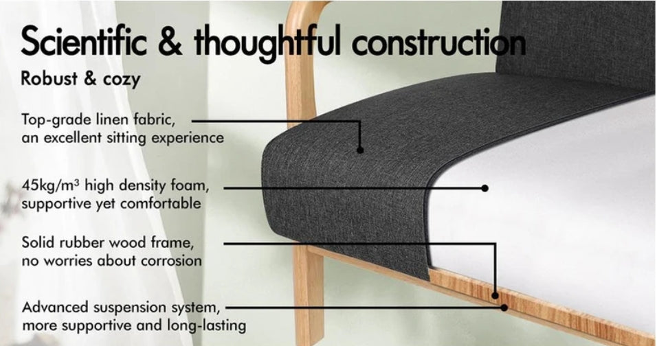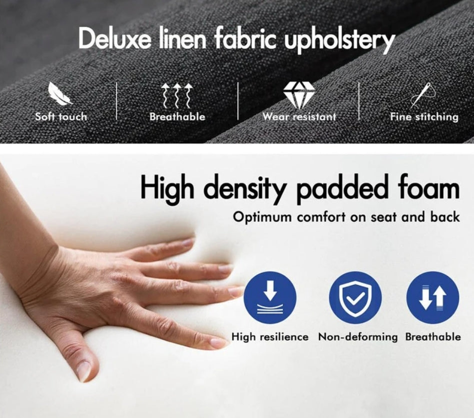 Upholstered in deluxe linen fabric, the Haven offers a soft, breathable feel that’s comfortable year round. Inside, high density foam cushioning provides excellent support on both the seat and back, designed to maintain its shape over time without sagging. The ergonomic backrest angle allows you to relax naturally, making it ideal for reading, lounging, or everyday use.