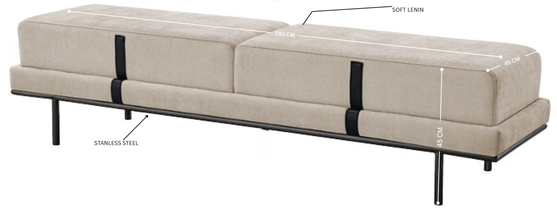 The Savoy Luxe Ottoman Bench is a statement of refined modern design, where clean lines meet sophisticated comfort. Upholstered in a smooth neutral fabric with bold black strap detailing, it strikes the perfect balance between minimalism and luxury. Elevated on a sleek black frame, its slim yet sturdy silhouette embodies contemporary elegance while offering lasting durability.