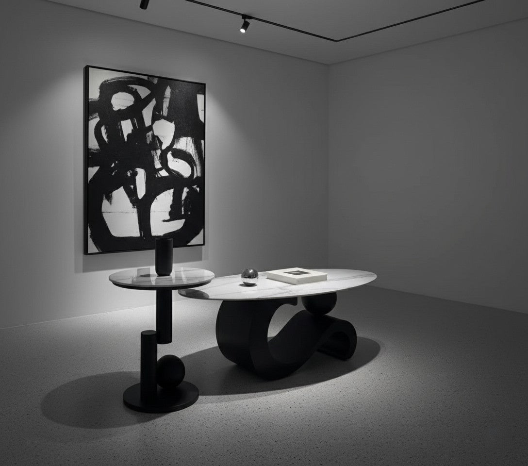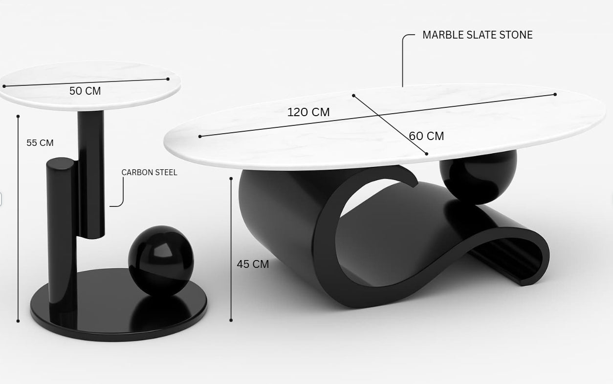 The Seana Coffee & Side Table Set is a bold statement of luxury design, blending sculptural form with premium materials. Featuring a 12mm marble slate stone top with refined natural veining, each piece brings timeless sophistication to your living space.